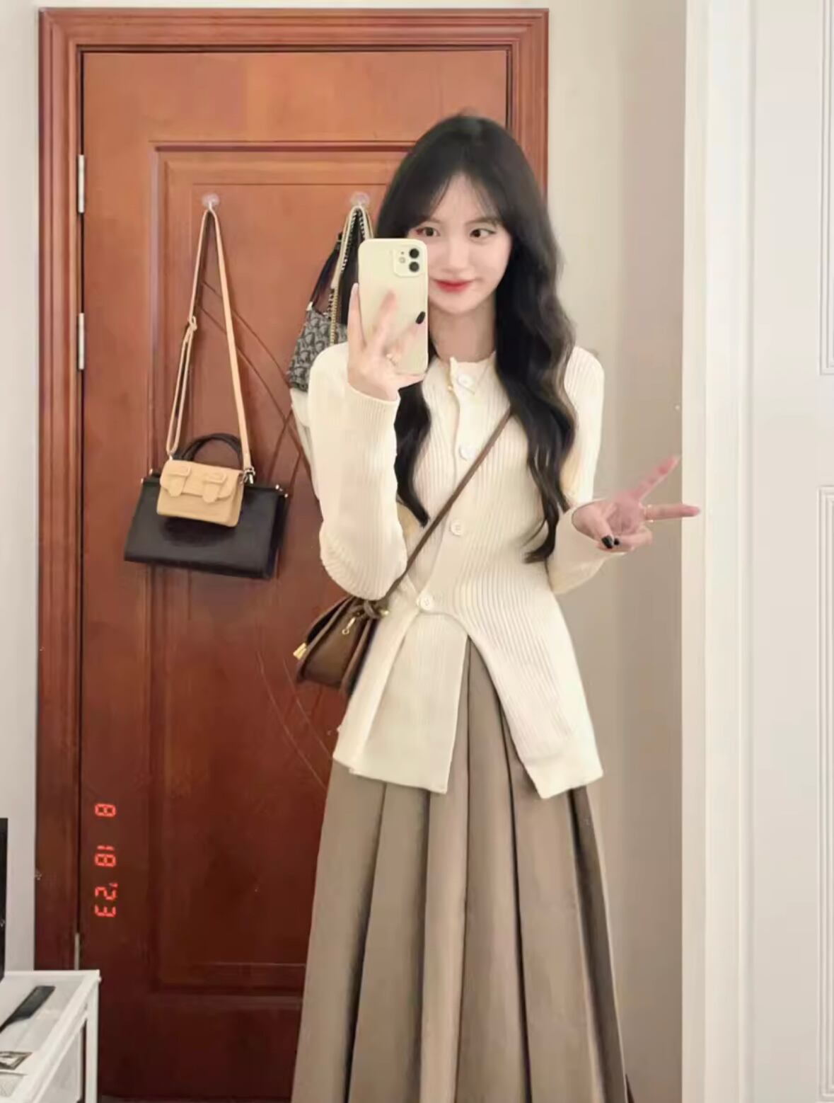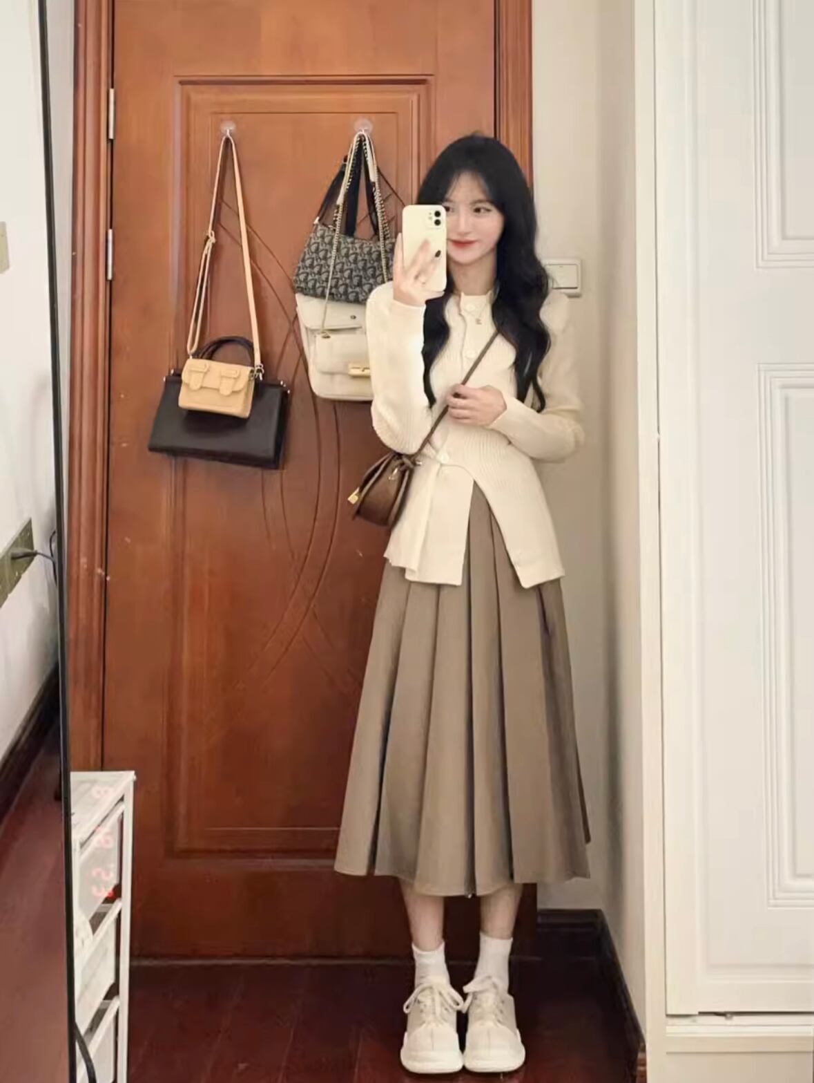 このセットアイテムは、着るだけで着痩せ効果があり、スタイルアップを叶えます。ニットは程よい厚みと柔らかな肌触りで、秋の気候にぴったりです。さらに、プリーツデザインのロングスカートは、ヒップ周りをカバーしながらも女性らしいシルエットを演出します。