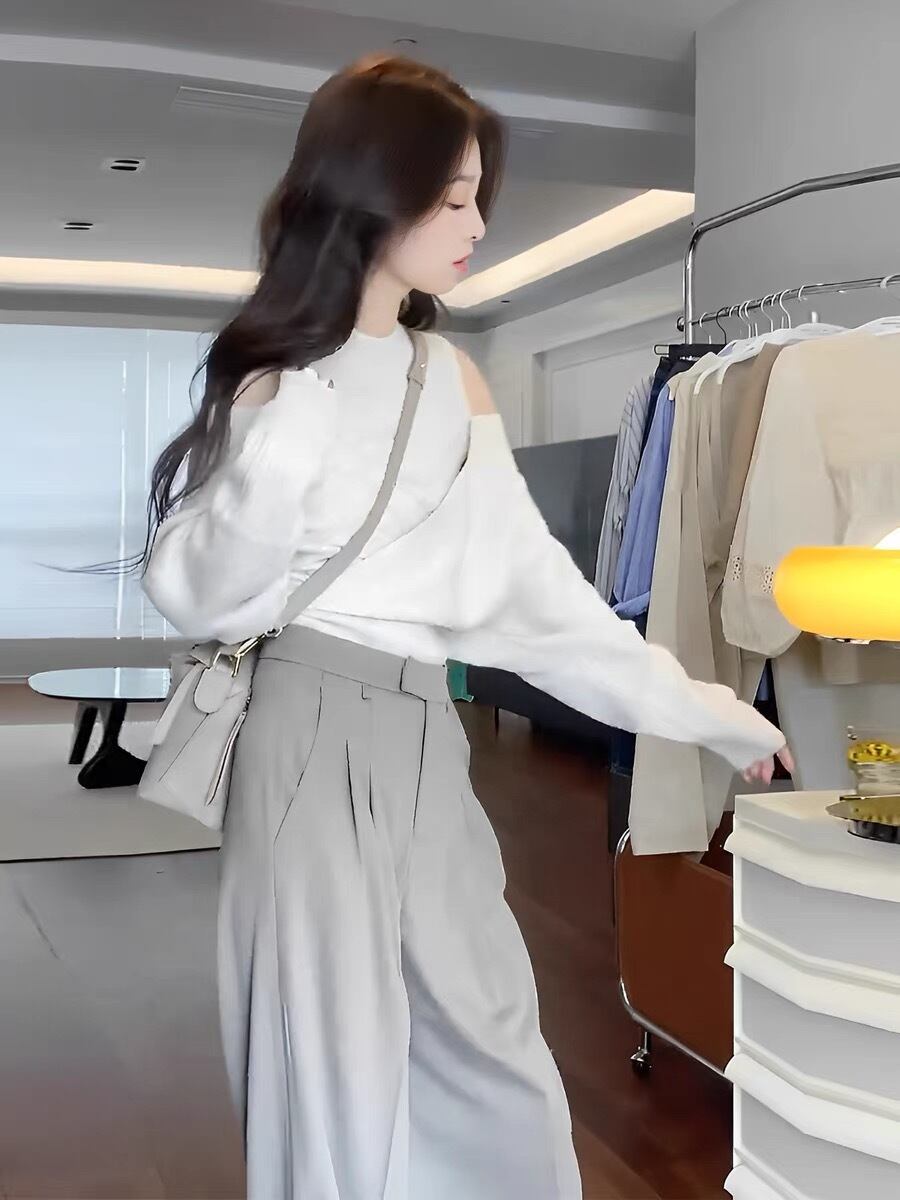 肌見せカットショルダーとタック入りパンツのセットアップが登場しました!トレンド感満載の韓国ファッションで、今年の秋をおしゃれに彩りましょう!