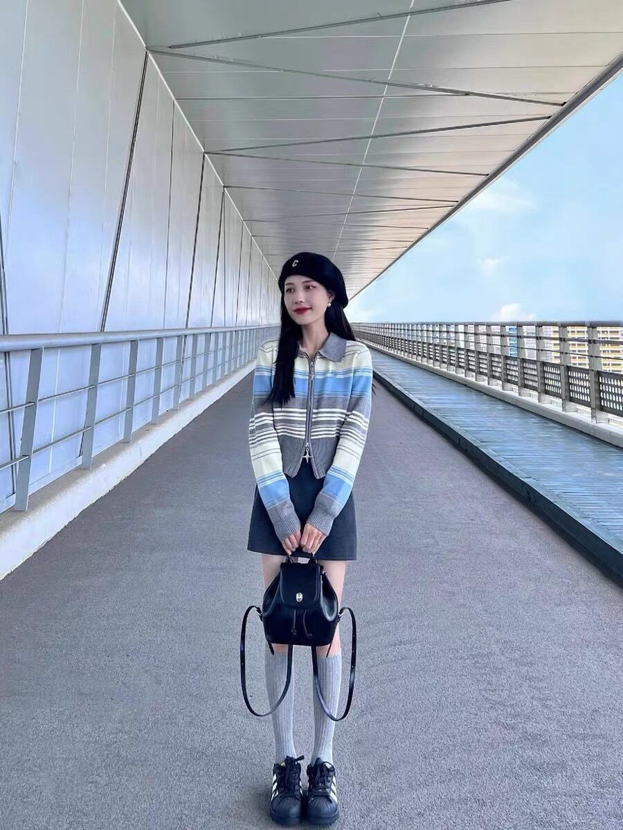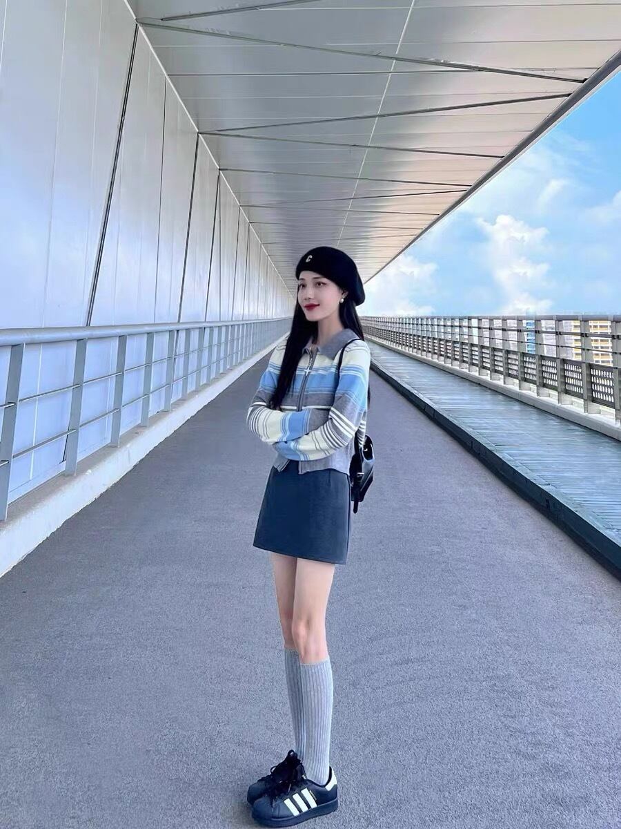 スカートはミニ丈で、足元をきれいに見せてくれます。