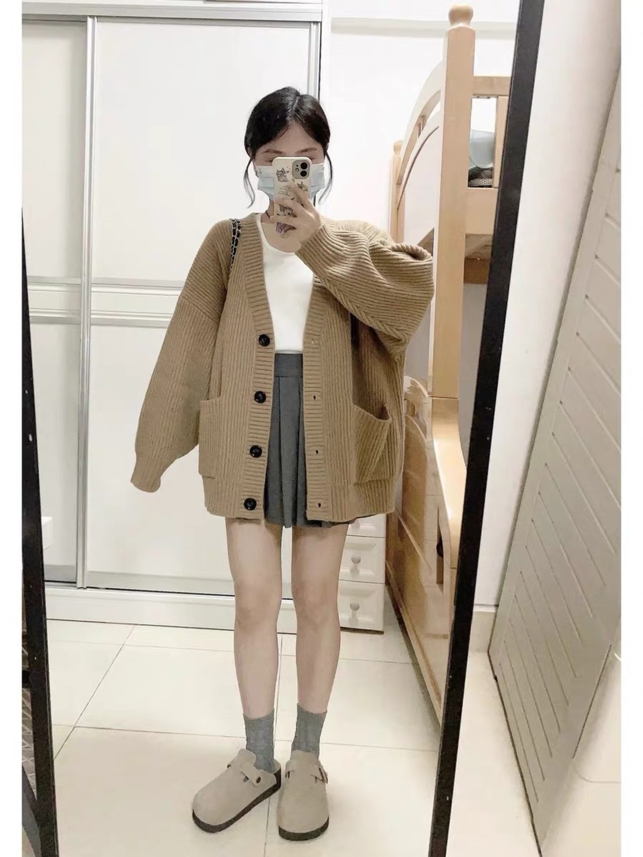 ゆったりとしたシルエットでお尻まで隠れる、カーディガン&スカートのセットです。カレッジスタイルを意識したデザインで、かわいさも追求しました。カーディガンはあえてゆったりとしたサイズ感で、リラックス感のある着こなしを叶えます。プリーツスカートはミニ丈で、女性らしい美脚効果も期待できます。