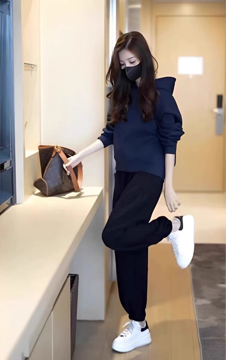 メンズライクな雰囲気が魅力の、2023年の秋にぴったりなパーカー&パンツセットです。ネイビーカラーのパーカーはゆったりとしたシルエットで、ショート丈なので女性らしい印象を演出します。スポーツウェアとしても活躍できるので、日常の動きやすいカジュアルスタイルにも最適です。